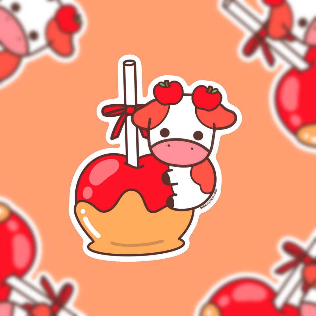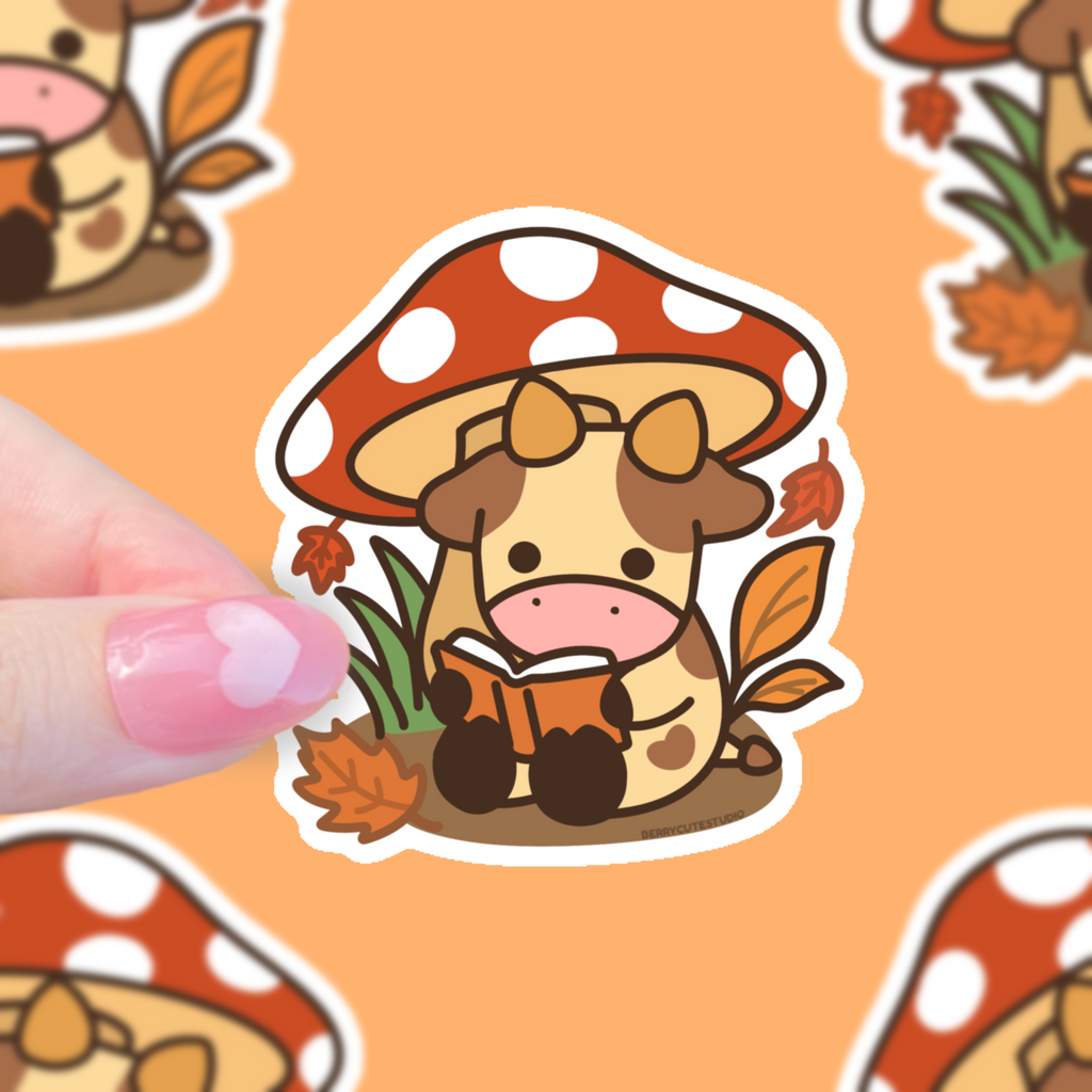 Cozy Autumn Cow Reading Under Mushroom Vinyl Sticker